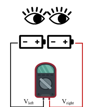 As the eye shifts position, this dipole's orientation changes, altering the potential difference detectable at the skin's surface with strategically placed electrodes. For instance, moving the eyes left increases the potential at the left eye's outer corner and decreases it at the right's, leading to a negative potential difference. Conversely, looking right reverses this effect, creating a positive potential difference. When the eyes are stationary and facing forward, the potential measured by the electrodes fluctuate around zero, providing a baseline for eye movement detection (Fig. 2).