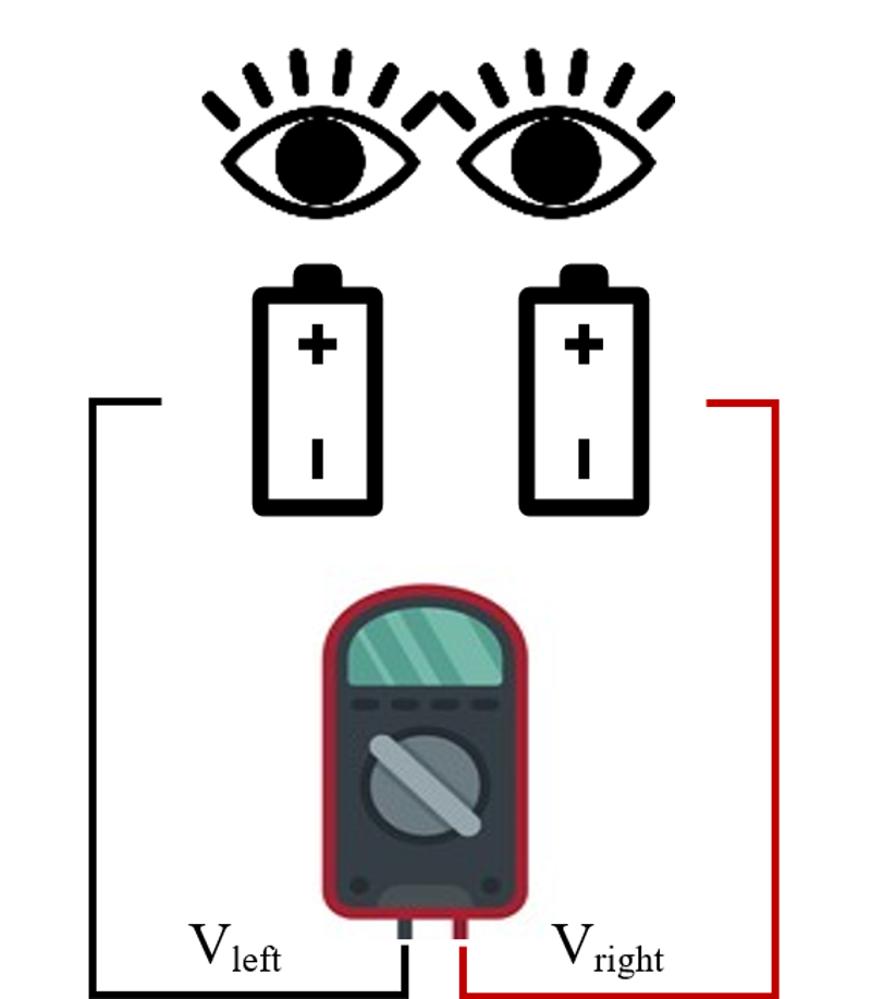 As the eye shifts position, this dipole's orientation changes, altering the potential difference detectable at the skin's surface with strategically placed electrodes. For instance, moving the eyes left increases the potential at the left eye's outer corner and decreases it at the right's, leading to a negative potential difference. Conversely, looking right reverses this effect, creating a positive potential difference. When the eyes are stationary and facing forward, the potential measured by the electrodes fluctuate around zero, providing a baseline for eye movement detection (Fig. 2).